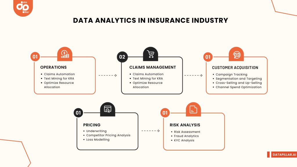 Operational efficiency is crucial for insurers to remain competitive in a rapidly evolving market. Data analytics streamlines operations by automating routine tasks, optimising workflows, and enhancing decision-making processes. Robotic Process Automation (RPA) combined with analytics can handle repetitive tasks, such as claims processing and policy administration, with higher accuracy and speed.